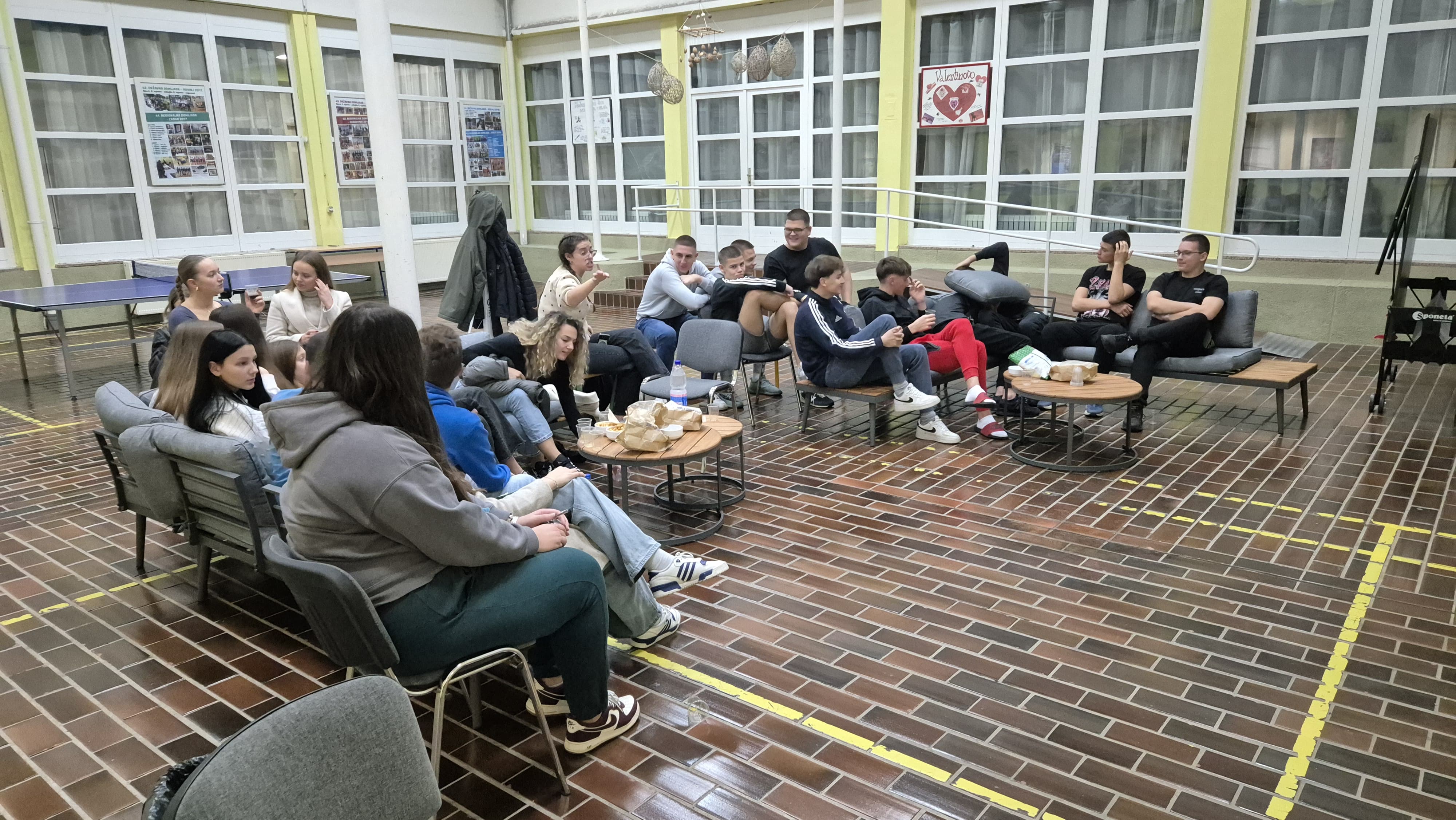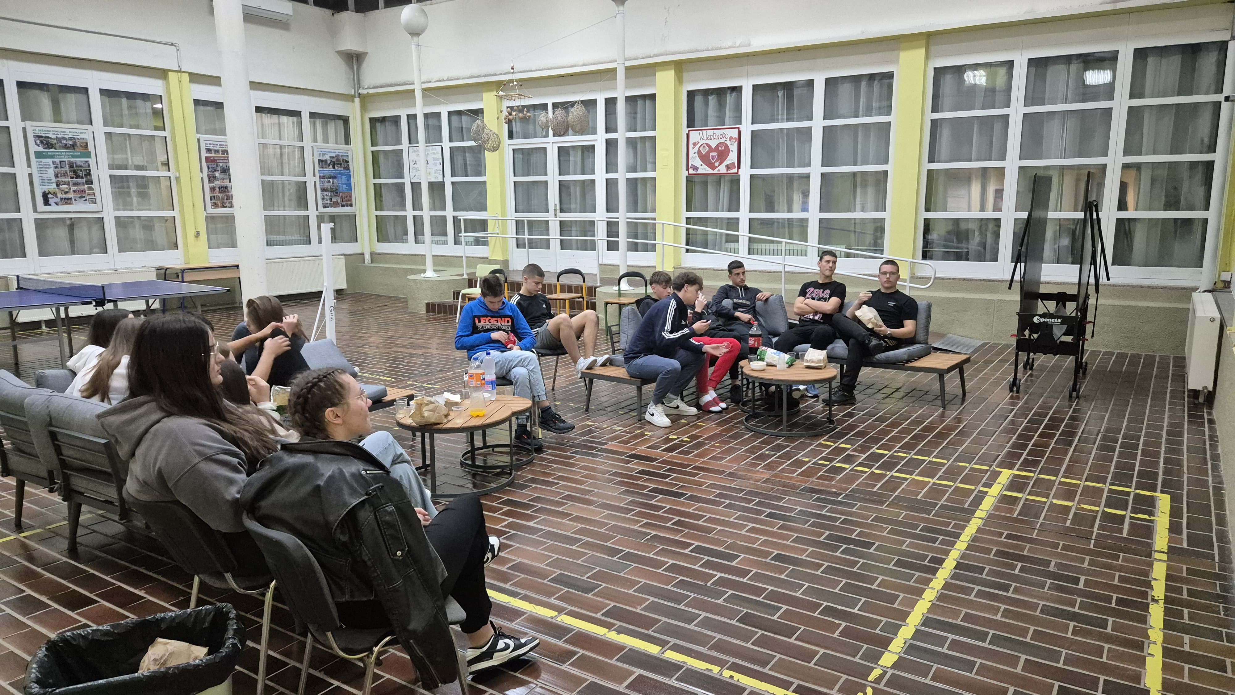 Dana 27. studenog 2024. učenici i učenice Doma su s odgajateljem Ivanom Kneževićem proveli ugodnu večer prateći nogometnu utakmicu Lige prvaka Dinamo – Borusia Dortmund. Atrijem su se širili miris kokica i glasovi podrške omiljenom klubu. Učenici i učenice koji dolaze iz različitih krajeva Republike Hrvatske i ujedno navijači različitih nogometnih klubova pokazali su hvalevrijedan sportski duh te svojim primjerom pokazali kako razvijati uvažavanje tuđeg i različitog mišljenja. Uz ugodnu zabavu i veselu sportsku atmosferu ujedno su i isprobali nove sjedeće garniture (a kako čujemo i ocijenili ih odličnom ocjenom :)) koje su upotpunile njihov ugodan boravak u Domu.