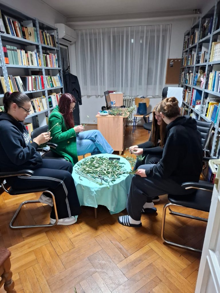 U našem učeničkom domu smo imali radionicu pletenja maslinovih grančica. Učenici su imali priliku upoznati se s tim običajem i vlastitim rukama stvoriti nešto lijepo i simbolično. Učenici su bili iznimno vrijedni, fokusirani i strpljivi te su pažljivo pratili upute odgajateljice Marinke Čuline Rončević. Brzo su usvojili novu vještinu i s ponosom izradili svoje grančice, od kojih je svaka bila posebna na svoj način. Neki su se s ovom vještinom susreli prvi put, ali su unatoč tome pokazali spretnost i kreativnost. Radionica je bila prilika za opuštanje, učenje, druženje i stvaranje ugodne atmosfere u domu. Njegovanje ove tradicije je bio prigodni uvod u nadolazeće školske praznike i blagdane.