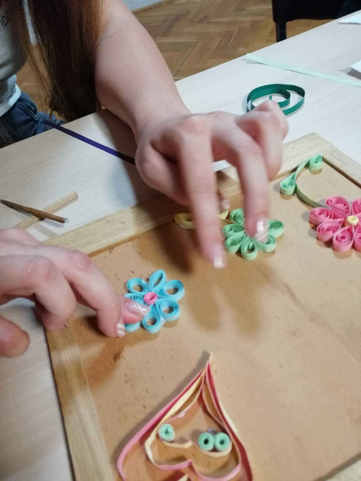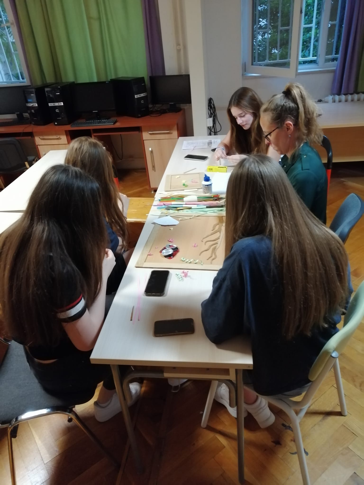 U ponedjeljak 27. svibnja 2024. održana je kretivna radionica quilling tehnike u kojoj su sudjelovale učenice 8. odgojne skupine – L. Grebenar, M. Reljica-Kostić, D. Juroš i A. Topalović. Radionicu je osmislila i vodila odgajateljica Tea Šegić Stipanov, a odgajatelj Damir Tomić je napravio tehničku pripremu. U ugodnom dvosatnom druženju učenice su se upoznale s osnovama quilling tehnike i pokazale velik potencijal u osmišljavanju i realizaciji različitih motiva. Kao rezultat uspješne radionice imamao dva nova djela kojima ćemo ukrasiti zidove našeg doma.