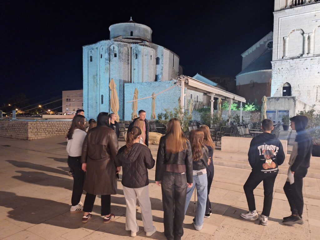 Povodom obilježavanja Dana grada Zadra i blagdana svetog Krševana (24.11.) učenici i učenice su sudjelovali na edukativnoj radionici: Razgled episkopalnog kompleksa u Zadru pod stručnim vodstvom profesorice Petre Mitrović, licenciranim turističkim vodičem za Zadarsku županiju. U pratnji profesora Damira Kraljevića i profesorice Maje Balić Motušić, učenici su imali prilike upoznati se s bogatom povijesti grada Zadra. Profesorica Mitrović provela ih je po najpoznatijim dijelovima grada poput rimskog foruma i hrama, crkve sv. Donata, nadbiskupske plače, crkve sv. Ilije, katedrale sv. Stošije, crkve sv. Marije, Narodnog trga i nezaobilazne Kalelarge. Učenici/e su također imali priliku čuti o različitim stilovima u arhitekturi, poznatim legendama o svetoj Stošiji i svetom Krševanu kao i o utjecaju mnogobrojnih naroda na našem području čiji se tragovi i danas mogu vidjeti. Na taj način učenici/e su naučili nešto o gradu u kojem će boraviti u narednom razdoblju i gdje će provoditi svoje slobodno vrijeme s novopečenim prijateljima iz Doma i škole.