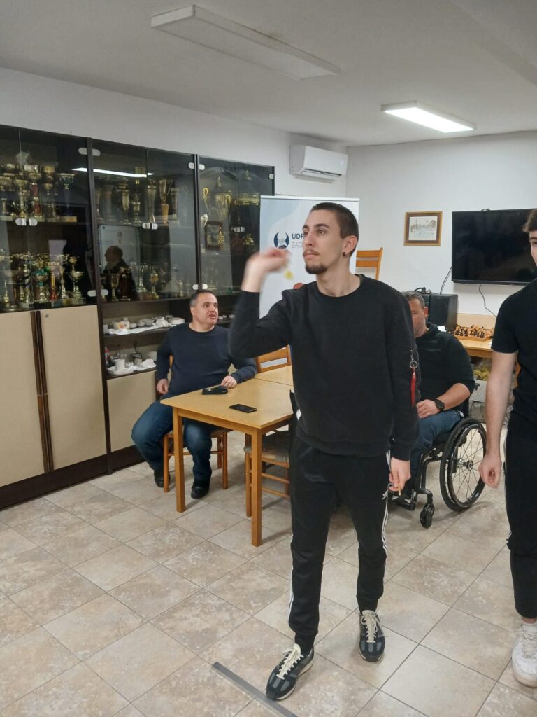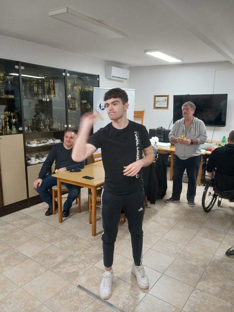 U srijedu 10. prosinca učenici Dino Datković, Mauro Tauzer i Nika Jurčević su na poziv odgajatelja Tonija Galova odlučili provjeriti svoje “nišanske sposobnosti” te zaigrati pikado. Sudjelovali su članovi Udruge osoba s invaliditetom Zadarske županije te članovi Udruge slijepih Zadarske županije koji su nam i bili domaćini. Podijelili smo se u 4 ekipe po 2 igrača te je igrao svatko sa svakim, a konačni rezultat nije ni bitan. Učenici su bili oduševljeni te su najavili odgajatelju da ih ponovno što prije zove kad se organiziraju ovi prijateljski turniri. Ovo je tek jedan u nizu druženja s članovima Udruge slijepih i Udruge osoba s invaliditetom te je već najavljen ponovni susret u pikadu, ali i prijateljski mečevi u šahu. Jedva čekamo nove susrete i druženja te se zahvaljujemo domaćinima na gostoprimstvu.