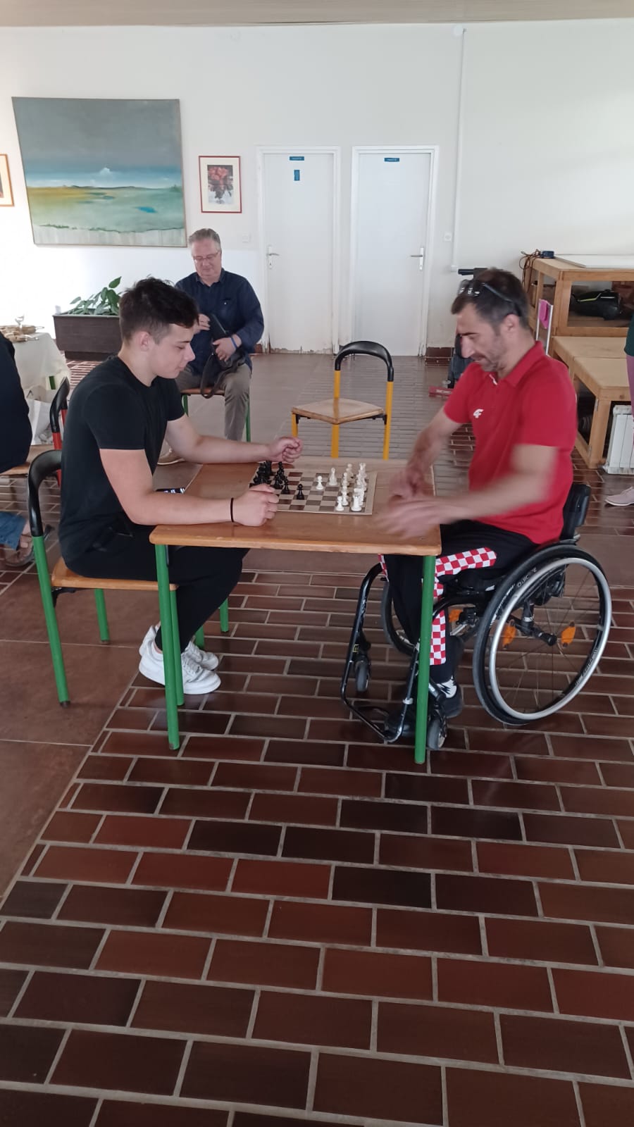 U četvrtak 23. svibnja u jutarnjim satima u našem Domu je organiziran prijateljski šahovski meč između naših učenika i članova UTI-a Zadarske županije. Inicijativu su pokrenuli voditelj šahovske sekcije odgajatelj Toni Galov te predsjednik UTI-a Željko Županović i tako samo nastavili iznimno dobru suradnju posljednjih godina. Nakon što je ravnatelj Bralić rekao par uvodnih riječi i pozdravio prisutne, šahisti su se rukovali i krenuli s igrom. Rezultat je bio sporedni faktor, no dalo se primijetiti da su ovaj put članovi UTI-a došli u kvalitetnom sastavu te da su se dobro pripremili za ove mečeve. Učenici su mogli mnogo toga naučiti i iz životnog iskustva naših gostiju te su nastavili ugodno razgovarati s članovima UTI-a i nakon odigranih mečeva. Već je dogovoren i nastavak suradnje kada će UTI Zadarske županije ugostiti naše učenike.