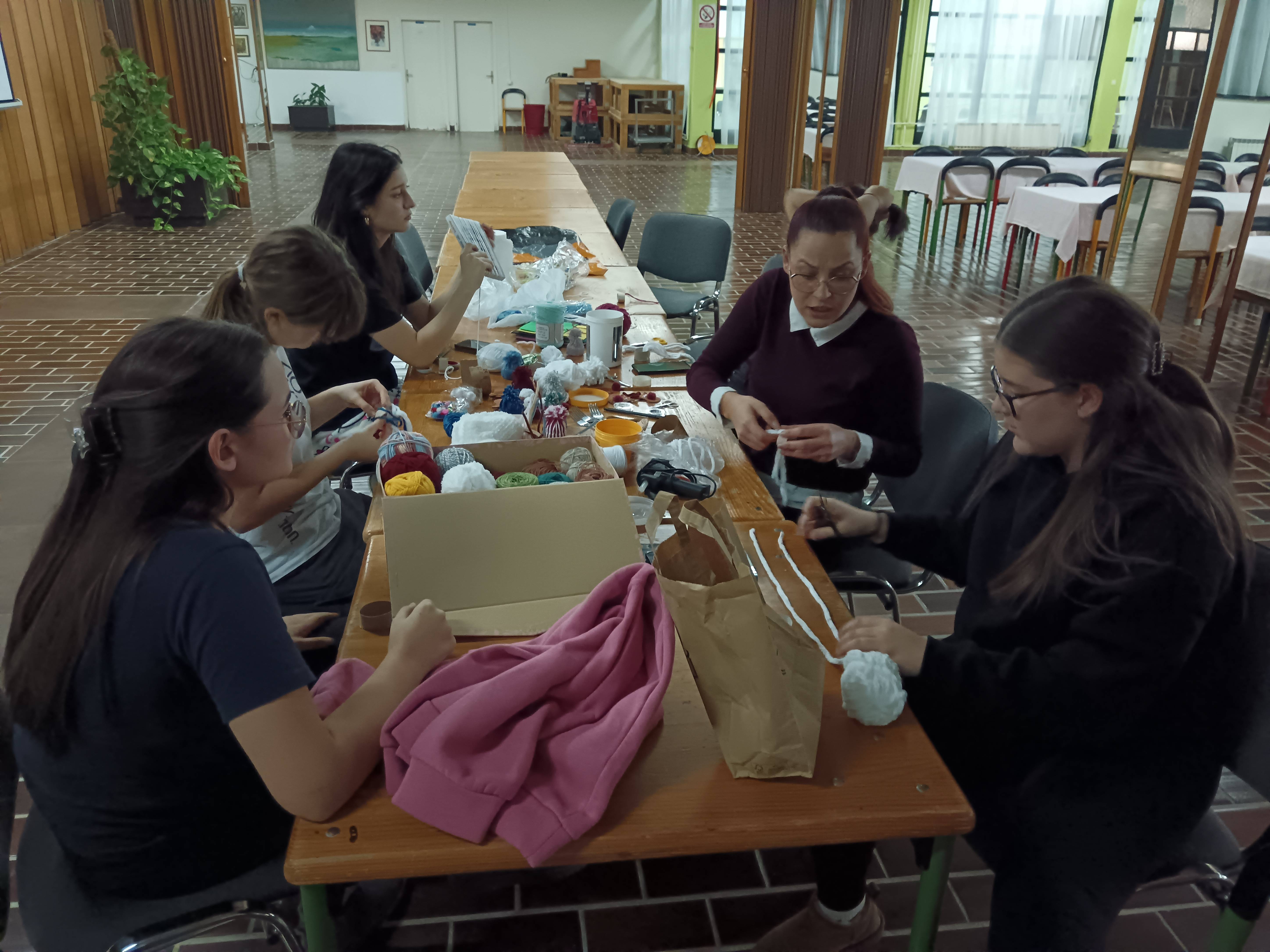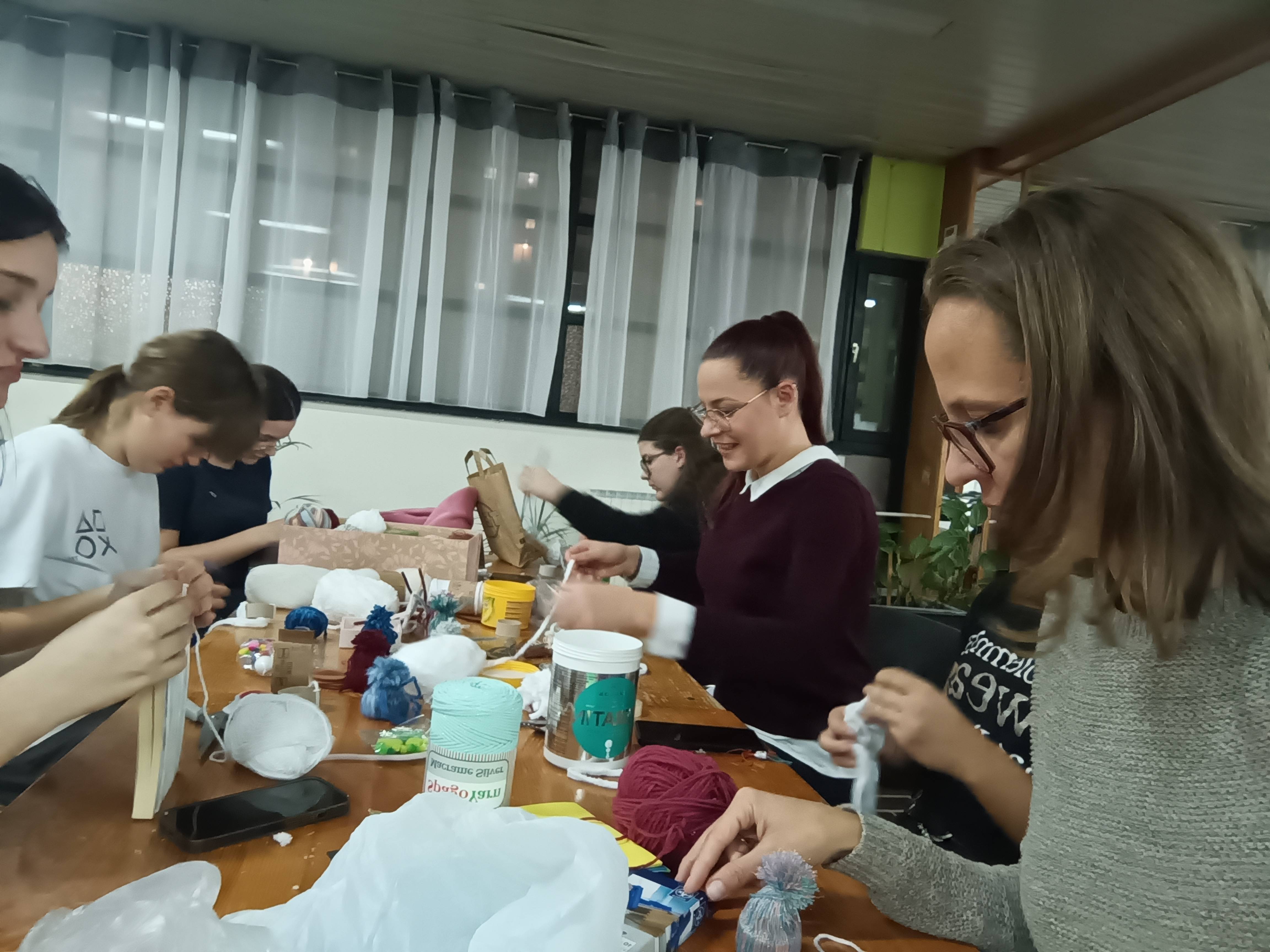 U četvrtak 28. studenog 2024. održana je kretivna radionica izrade božićnih ukrasa u kjoj su sudjelovale učenice 7. i 8. odgojne skupine. Radionicu su pripremile odgajateljice Tea Šegić Stipanov i Marta Viduka. U ugodnoj i veseloj atmosferi učenice su pokazale vještine rada s različitim materijalima. Vuni, koncima, šlokicama i perlicama nije odoljela ni naša draga meicinska sestra pa nam se pridružila u našoj maloj radioni. Naši novi čupavi i veseli ukrasi dodatno će pojačati će duh Božića koji se već navelio osjeća u Domu.
